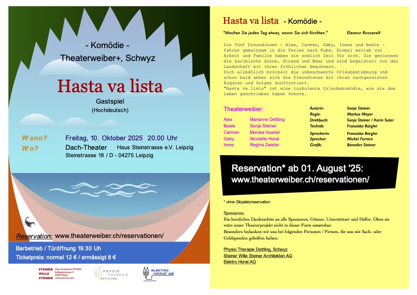Nach sieben erfolgreichen Aufführungen in Schwyz und in Berlin treten wir im Herbst 2025 mit unserem aktuellen Stück "Hasta va lista" in Leipzig